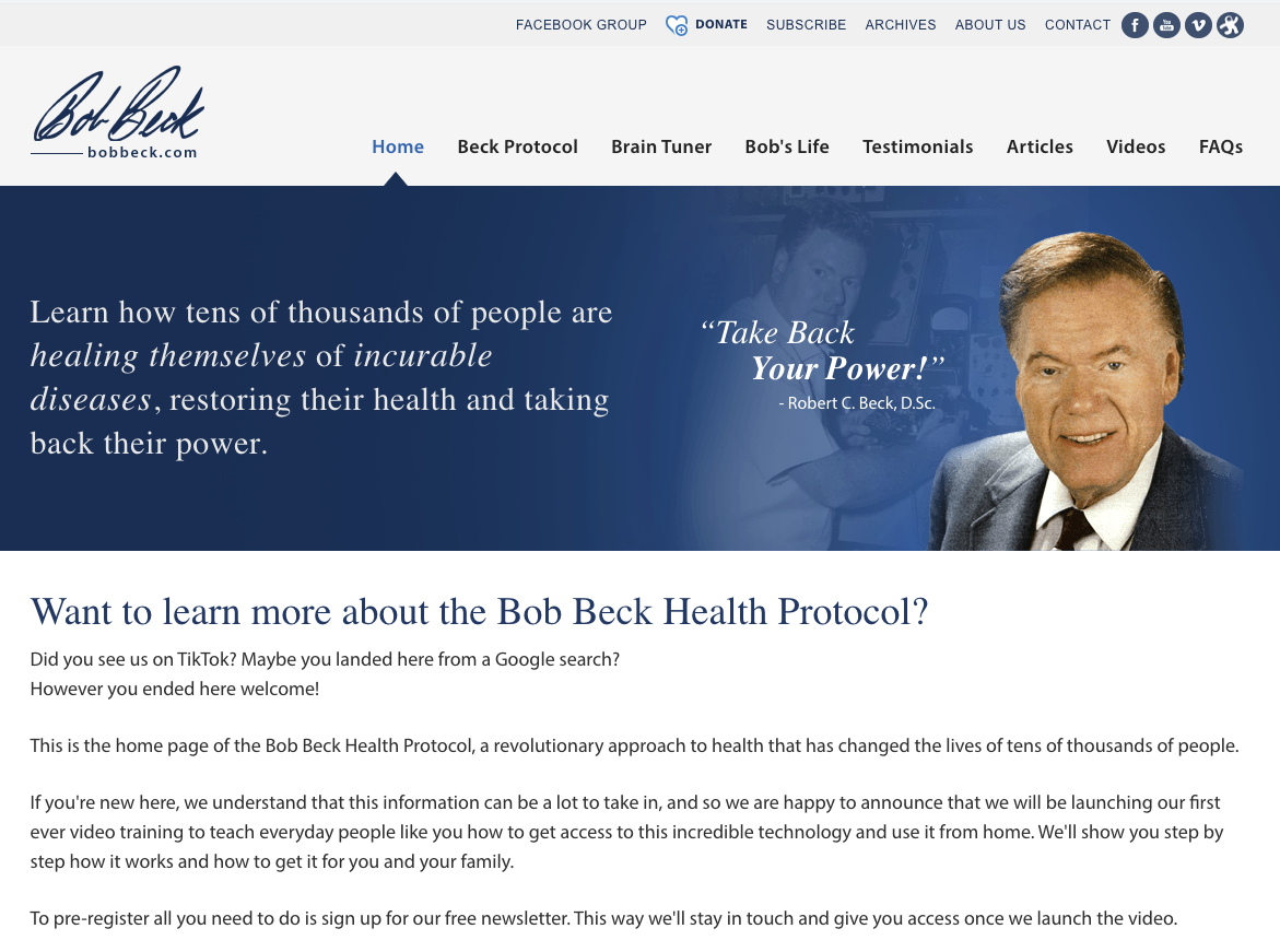 Bob Beck’s Erfindungen sind so bahnbrechend und atemberaubend, dass er von mexikanischen Ärzten für den Nobelpreis vorgeschlagen wurde. Natürlich hat er diesen nicht erhalten, denn Bob Beck’s Entdeckungen und Erfindungen sind der Todesstoß für die Schulmedizin, die Vernichtung eines Berufsstandes und der Industrie, die diesen Berufsstand korrumpiert.