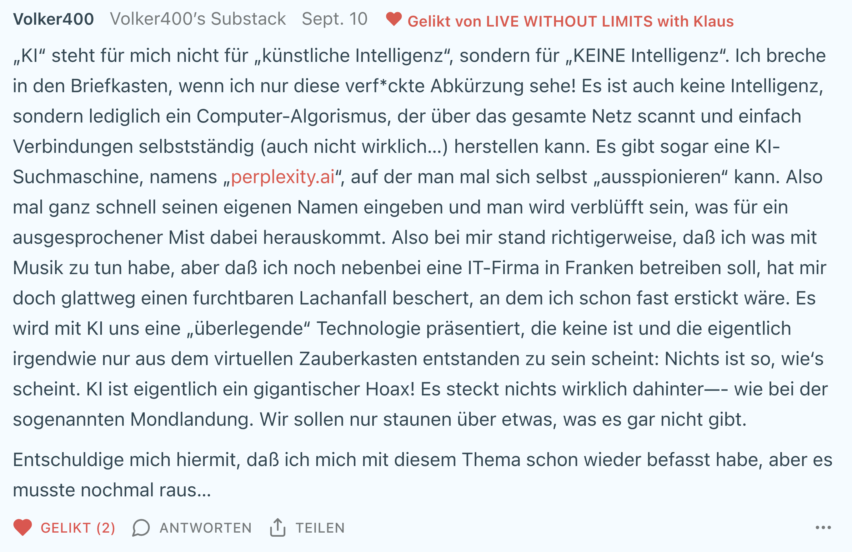 KI ist selbstverständlich strunzdoof. Insofern ist das Wort Intelligenz per se falsch.
